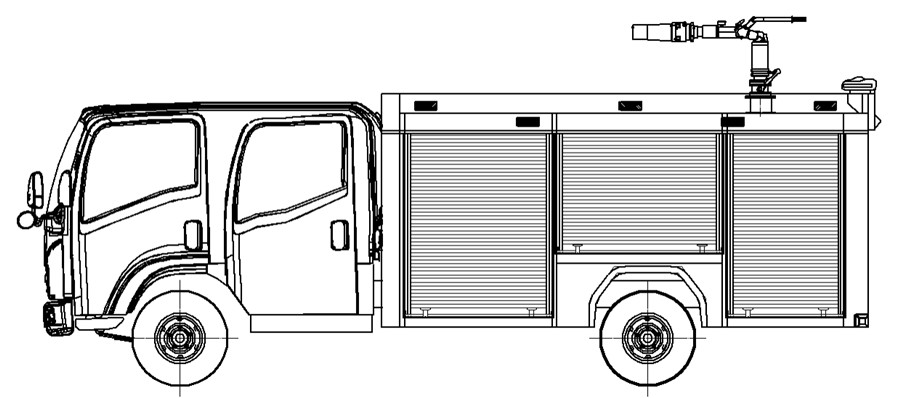 整車由消防員乘員室和車身兩大部分組成,車身布置采用內(nèi)藏罐式結(jié)構(gòu),左右兩側(cè)為器材箱,中部為水罐,器材箱后部為泵房。 |